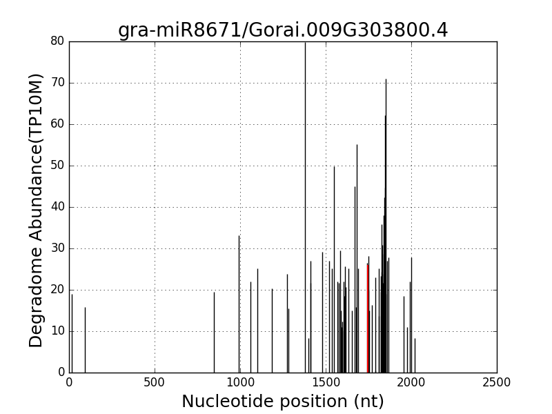 Species  > Gossypium_raimondii  > gra-miR8671  > gra-miR8671-target  > Gorai.009G303800.4 (1734..1753)
